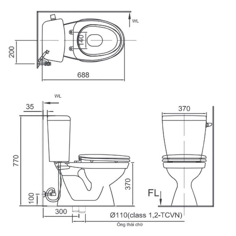 Bồn cầu INAX C-117VAN/ BW1 (C117VAN) 2 khối nắp đóng êm CF-37VSAK (xả gạt)