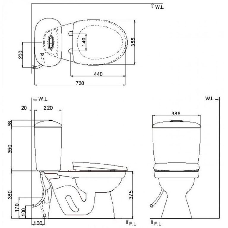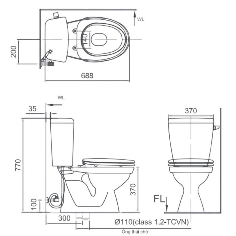 Bồn cầu INAX C-117A+CW-S15VN/ BW (C117VAN) 2 khối nắp rửa cơ S15VN (xả gạt)