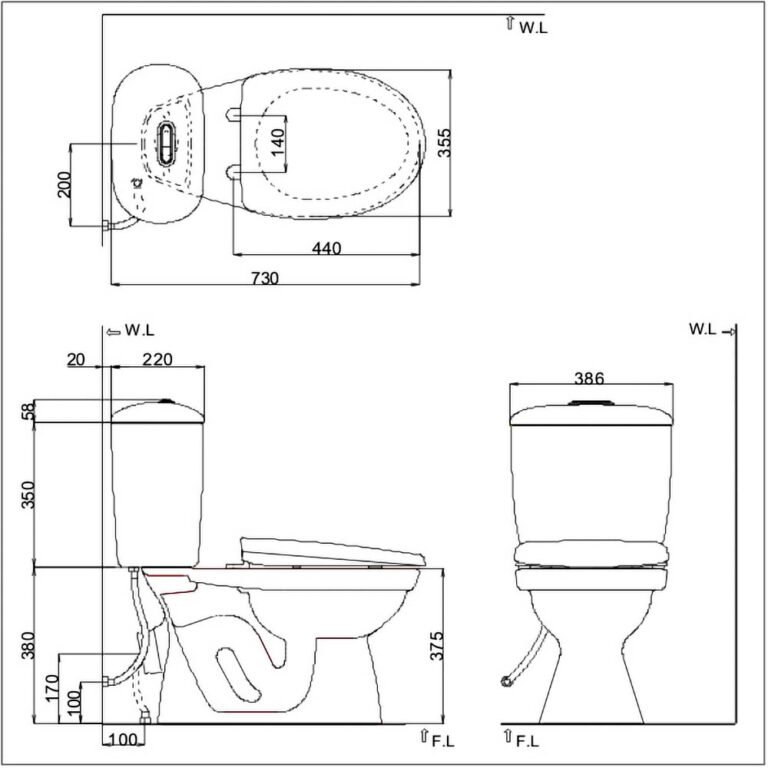 Bồn cầu INAX C-117VA/ BW1 (C117VA) 2 khối nắp đóng thường (xả gạt)