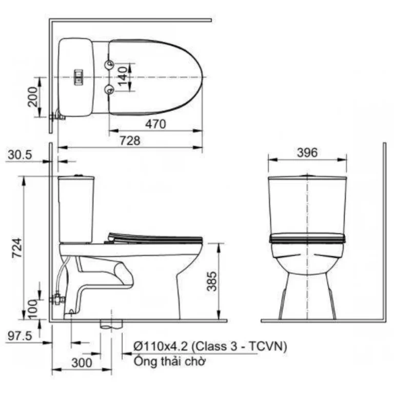 Bồn cầu 2 khối nắp điện tử