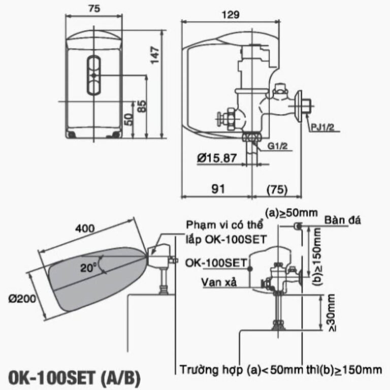 Van xả tiểu INAX OK-100SET(B) (OK100SETB) cảm ứng dùng Pin (dùng ống cong)