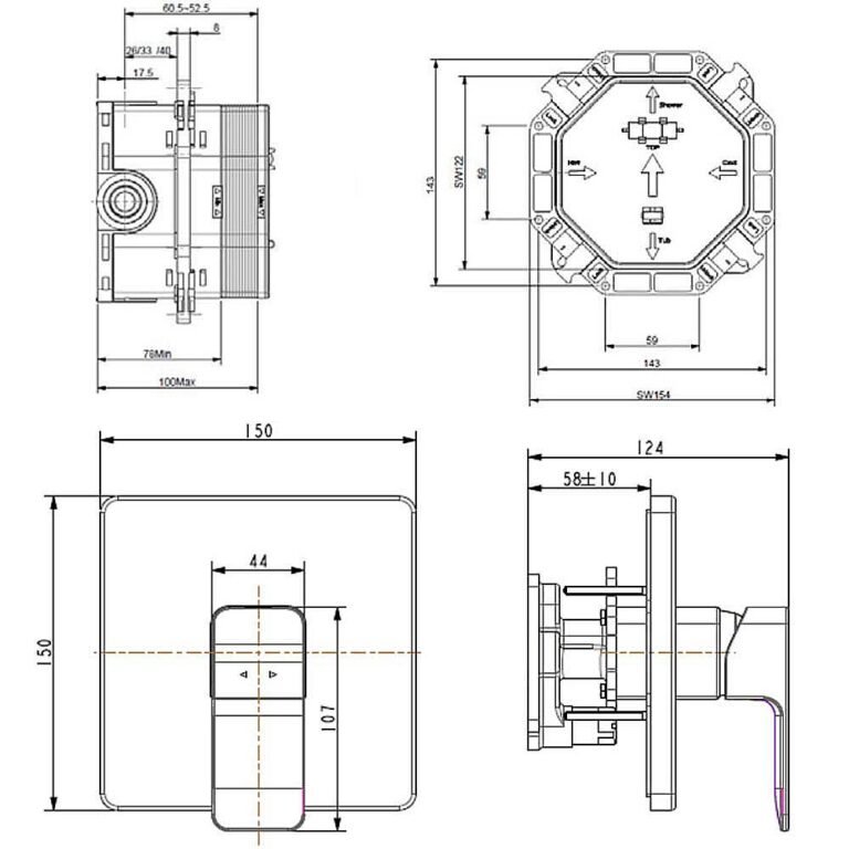 Vòi sen tắm American Standard WF-1322CS (WF1322CS) âm tường, dòng Acacia E, màu vàng bóng