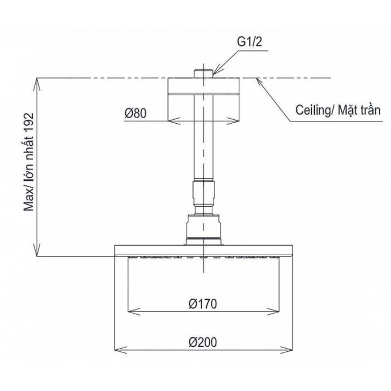 Bát sen gắn trần TOTO TBW08001A1 dòng G vuông 200mm