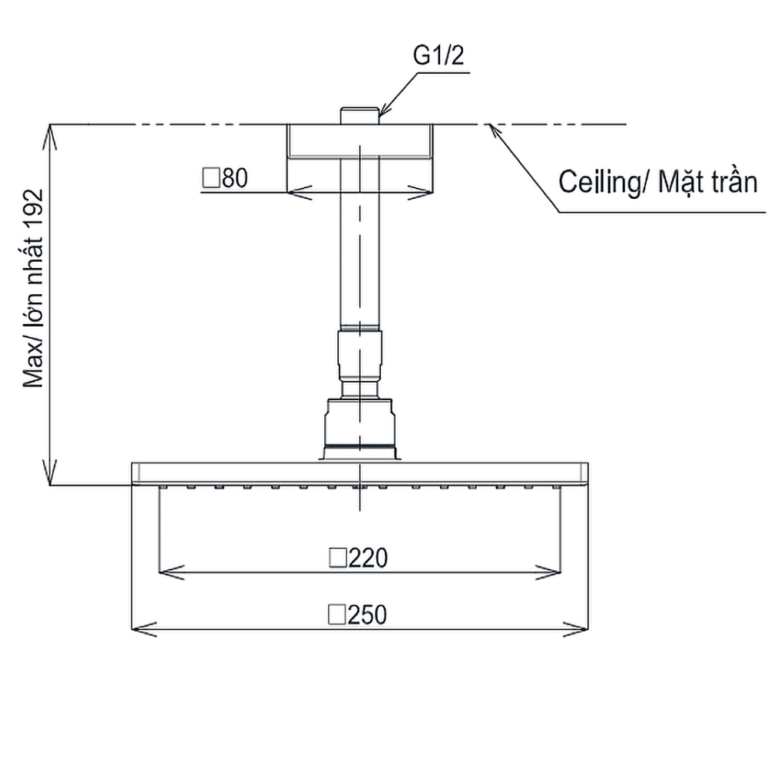 Bát sen gắn trần TOTO TBW08002A1 dòng G vuông 250mm