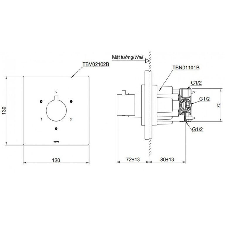 Van chuyển hướng TOTO TBV02103B#PN 2 đường nước (không kèm phụ kiện âm tường) mạ Crom bóng