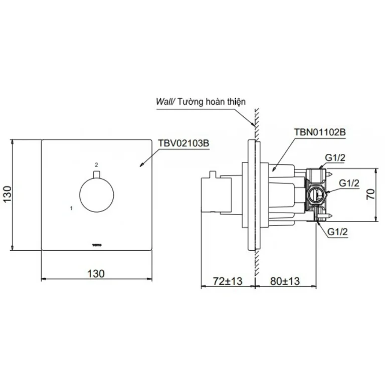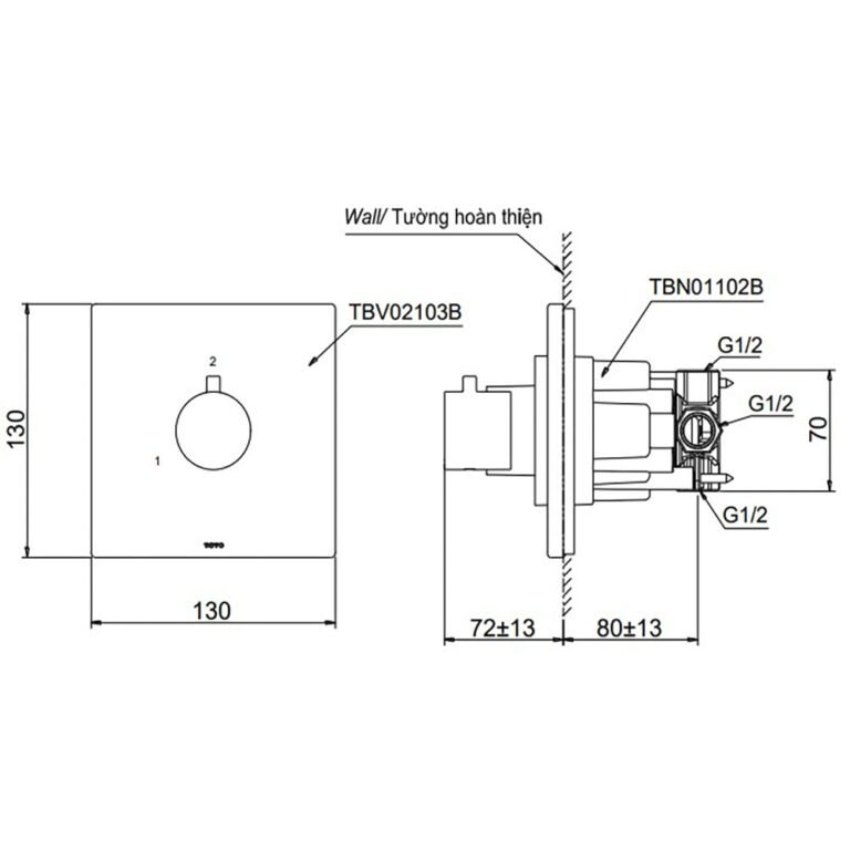 Van chuyển hướng TOTO TBV02103B/ TBN01102B 2 đường nước