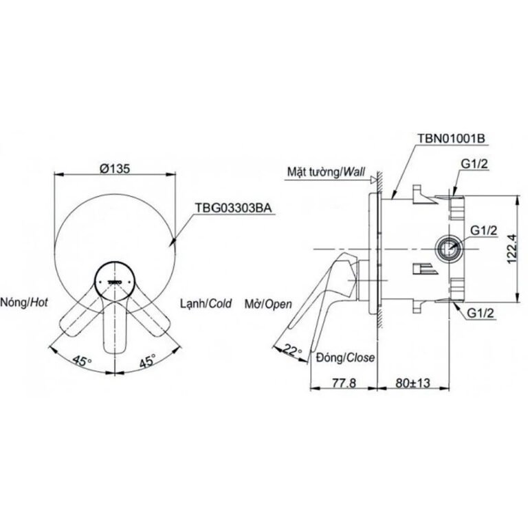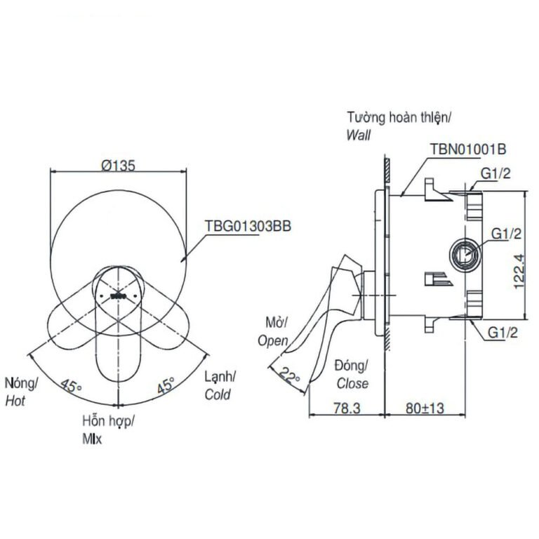 Van điều chỉnh nhiệt độ TOTO TBG02303BA/ TBN01001B (kèm phụ kiện âm tường)