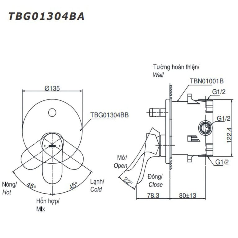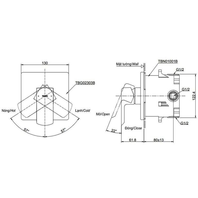 Van điều chỉnh nhiệt độ TOTO TBG02304BA/ TBN01001B (kèm phụ kiện âm tường)