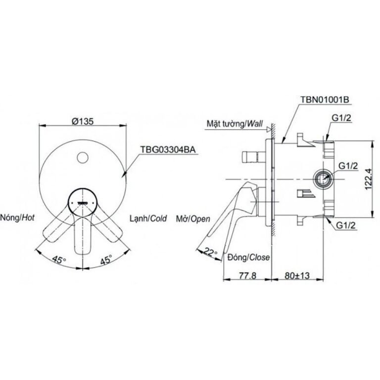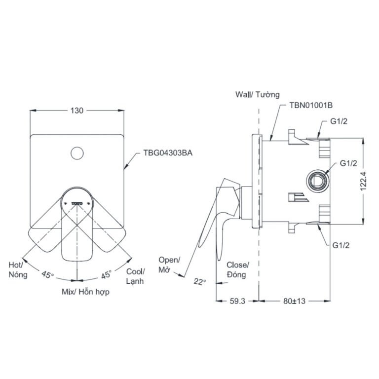 Van điều chỉnh nhiệt độ TOTO TBG04303BA/ TBN01001B (kèm phụ kiện âm tường)