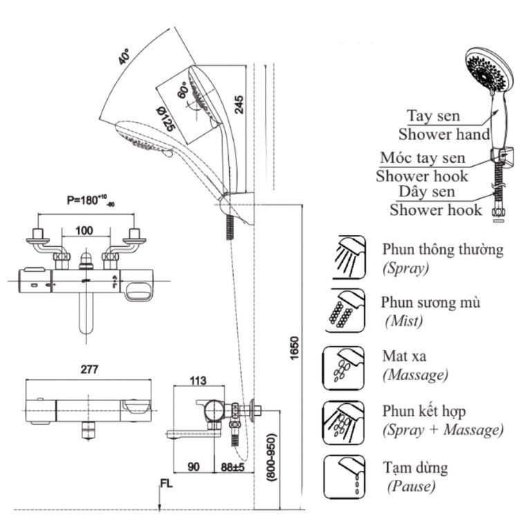 Vòi sen tắm INAX BFV-403S (BFV403S) nóng lạnh, tay sen 3C massage 5 chế độ