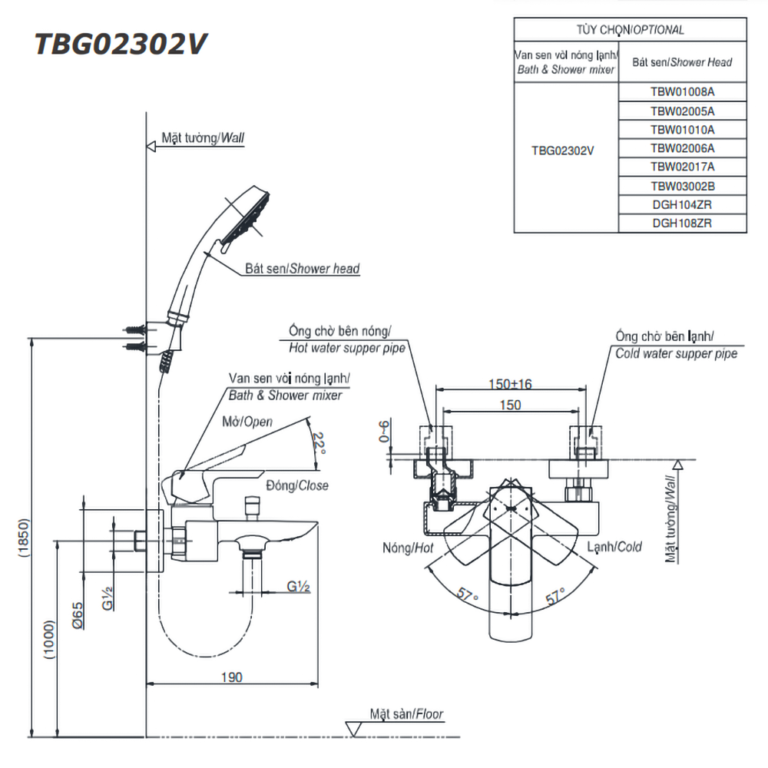 Vòi sen tắm TOTO TBG02302V/ TBW01008V nóng lạnh