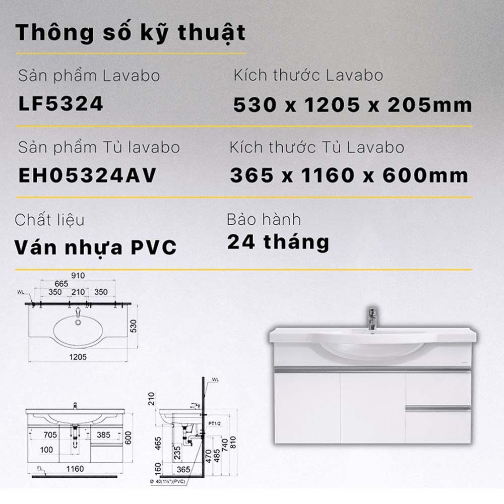 Home » Cửa hàng » Lavabo » Lavabo tủ » Lavabo tủ Caesar » Bộ tủ lavabo CAESAR LF5324 + EH05324AV treo tường