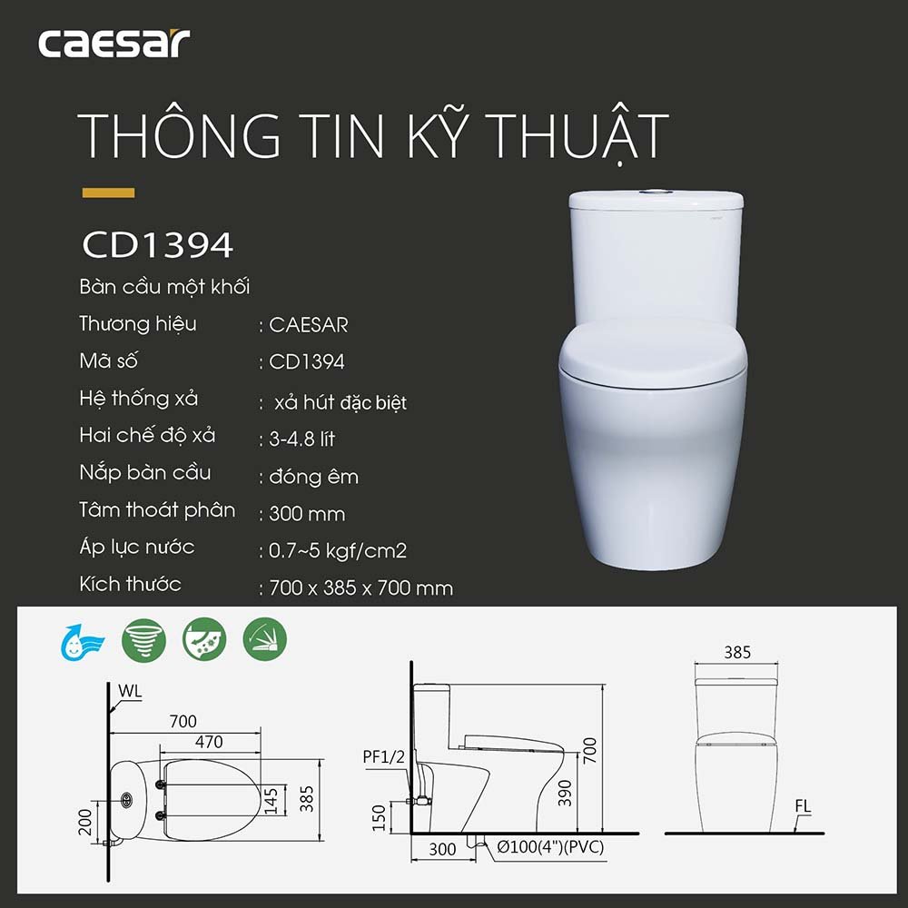 Home » Cửa hàng » Bồn cầu » Bồn cầu 1 khối » Bồn cầu 1 khối nắp đóng êm » Bồn cầu CAESAR C1394 (CD1394) 1 khối nắp êm M233