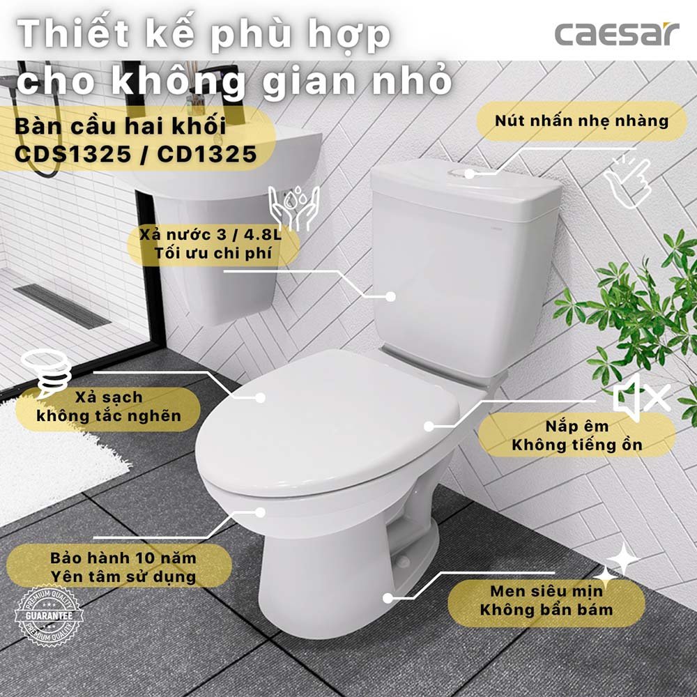 Bồn cầu CAESAR CD1320 2 khối nắp êm M221