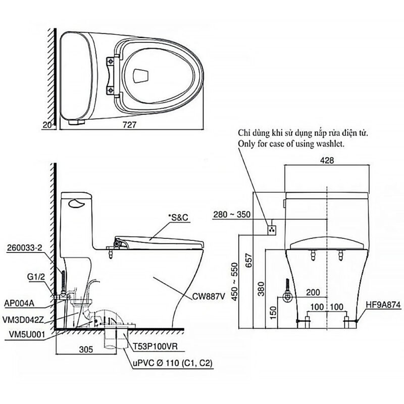 ♦ Nắp cầu: nắp rửa cơ CW-S32VN