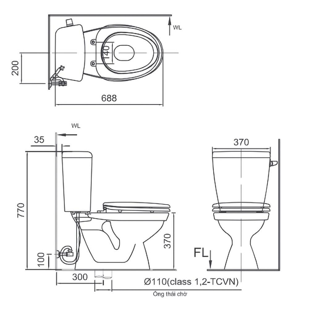 ♦ Hệ thống xả: Công nghệ ECO 4.5 – Siêu tiết kiệm nước (4.5L).