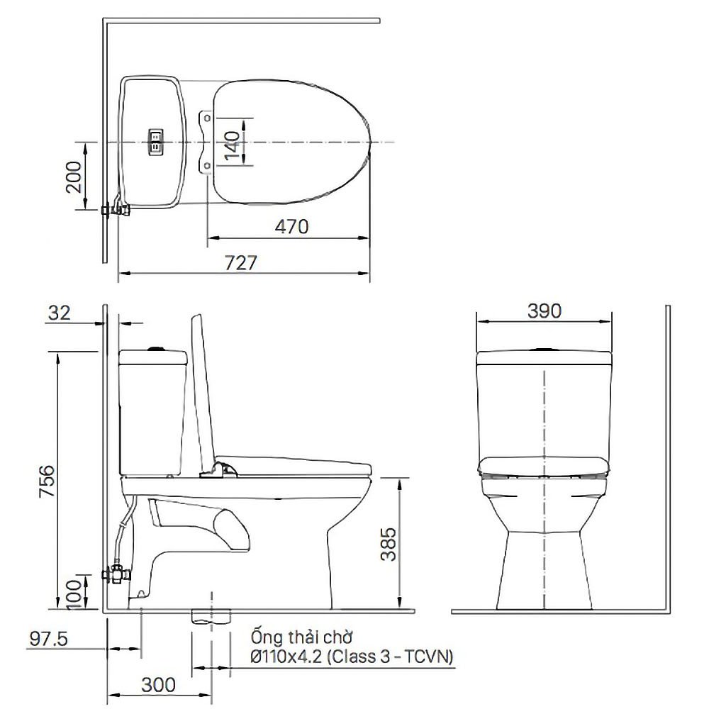♦ Hệ thống xả: xả siphon tiết kiệm nước