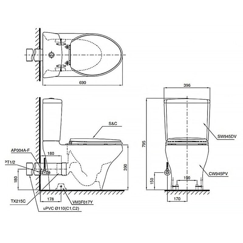 Hãy là người đầu tiên nhận xét “Bồn cầu INAX C-504A+CW-S32VN-1/ BW1 (C504A) 2 khối nắp rửa cơ S32VN” Hủy