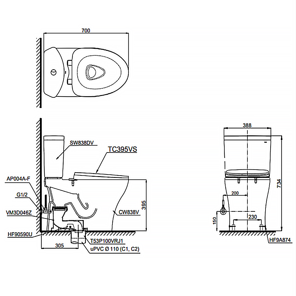 Home » Cửa hàng » Bồn cầu » Bồn cầu 2 khối » Bồn cầu 2 khối nắp êm » Bồn cầu TOTO CS838DT10#XW 2 khối, nắp êm TC395VS