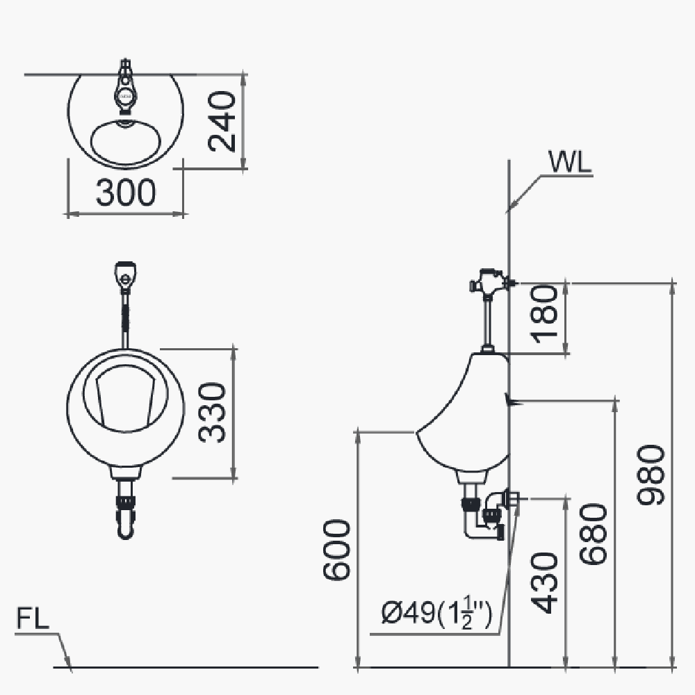 ♦ Sản phẩm không bao gồm van xả bồn tiểu