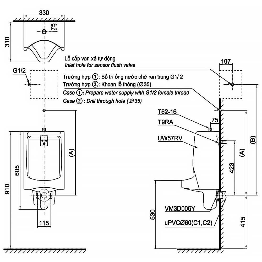 Home » Cửa hàng » Bồn tiểu » Bồn tiểu treo tường » Bồn tiểu treo tường Toto » Bồn tiểu nam TOTO UT57S#W treo tường