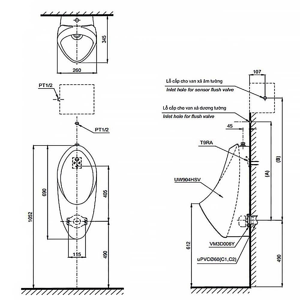Home » Cửa hàng » Bồn tiểu » Bồn tiểu treo tường » Bồn tiểu treo tường Toto » Bồn tiểu nam TOTO UT904HR#XW treo tường