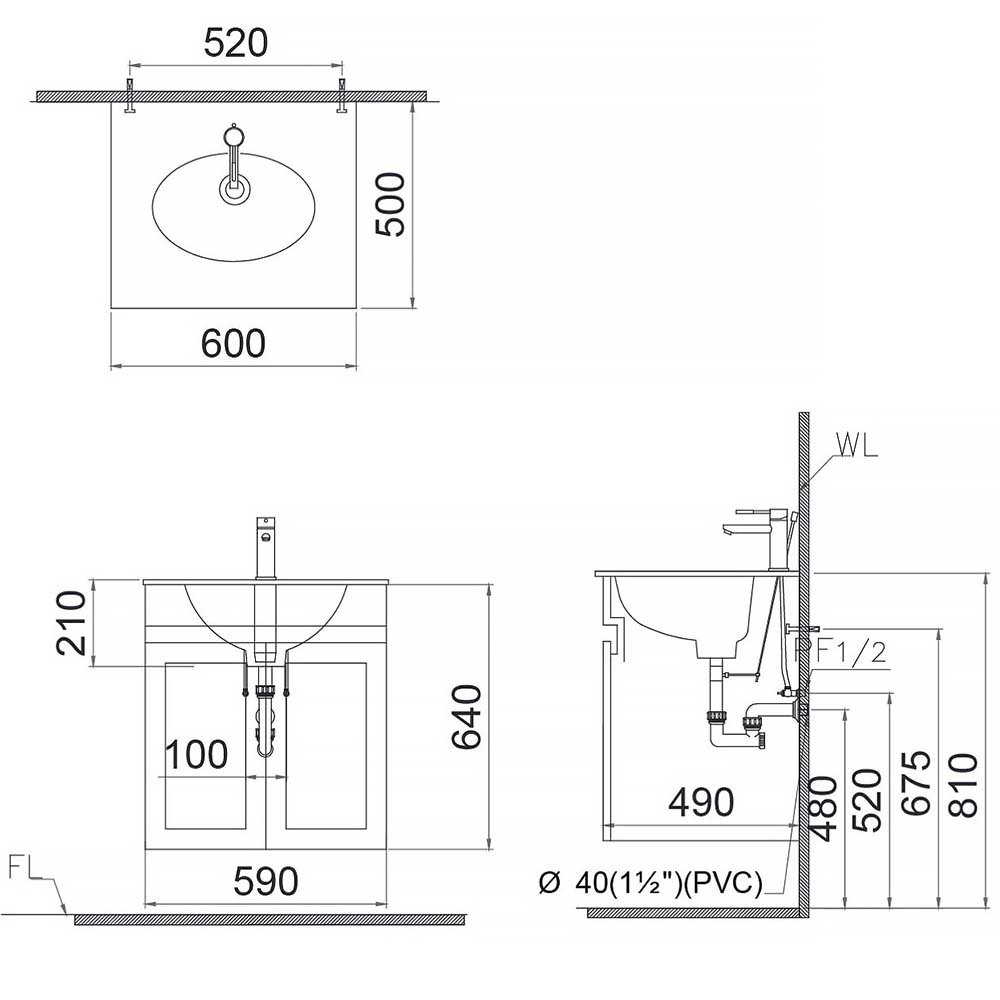 ♦ Kích thước: 600 x 500 x 210 mm