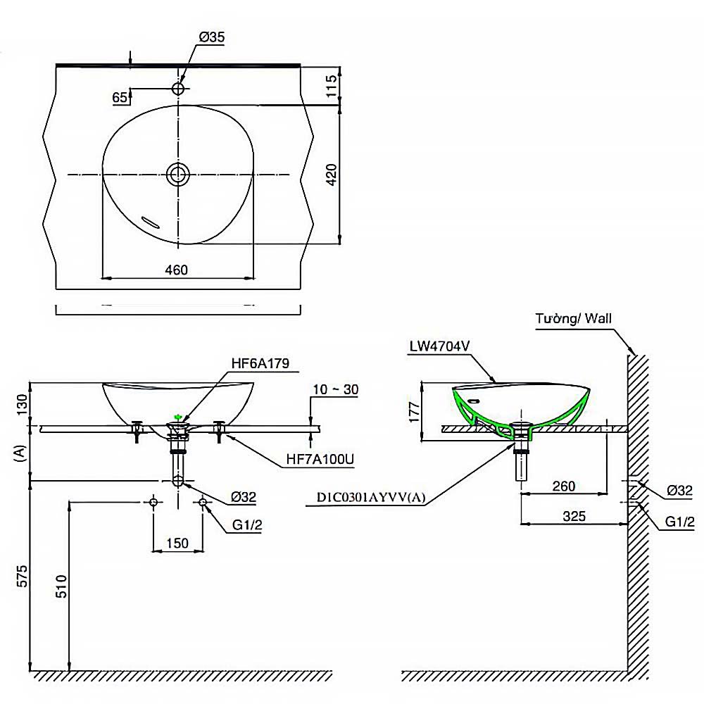 ♦ Chất liệu: Linear Ceram (Bao gồm bộ xả VM5D417#MBL)