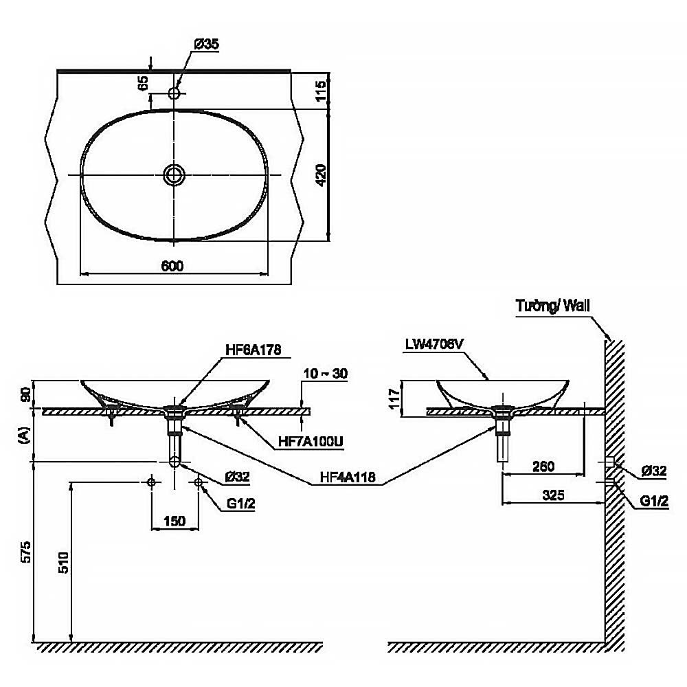 ♦ Kích thước: L420 x W600 x H117 (mm)