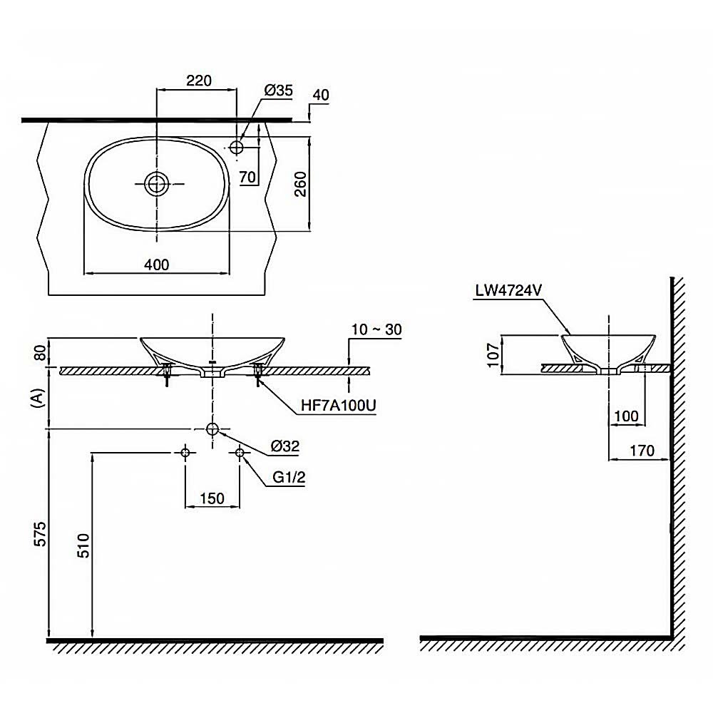 ♦ Chất liệu: Linear Ceram, Viền chậu siêu mỏng 4mm (Bao gồm bộ xả)