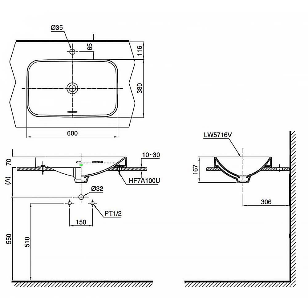 ♦ Kích thước: L380 x W600 x H167 (mm)
