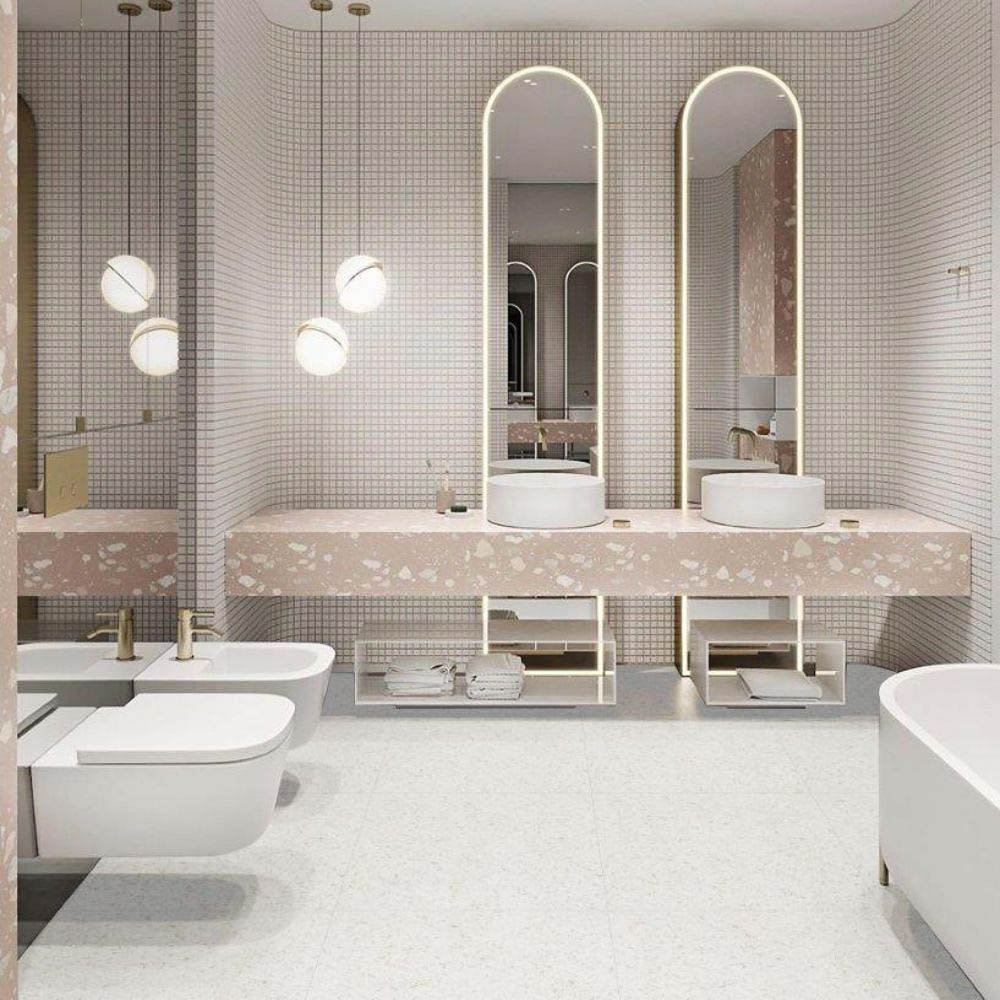 ♦ Mô tả: Xương Porcelain, bề mặt mờ, 4 face, gạch vân Terrazzo.