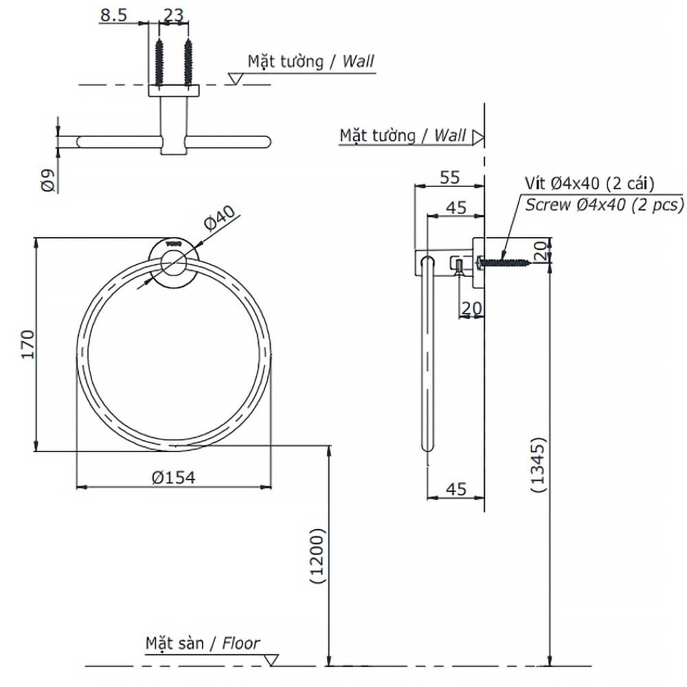 Home » Cửa hàng » Phụ kiện phòng tắm » Máng khăn » Máng khăn Toto » Giá treo khăn TOTO YTT406V dòng L tròn