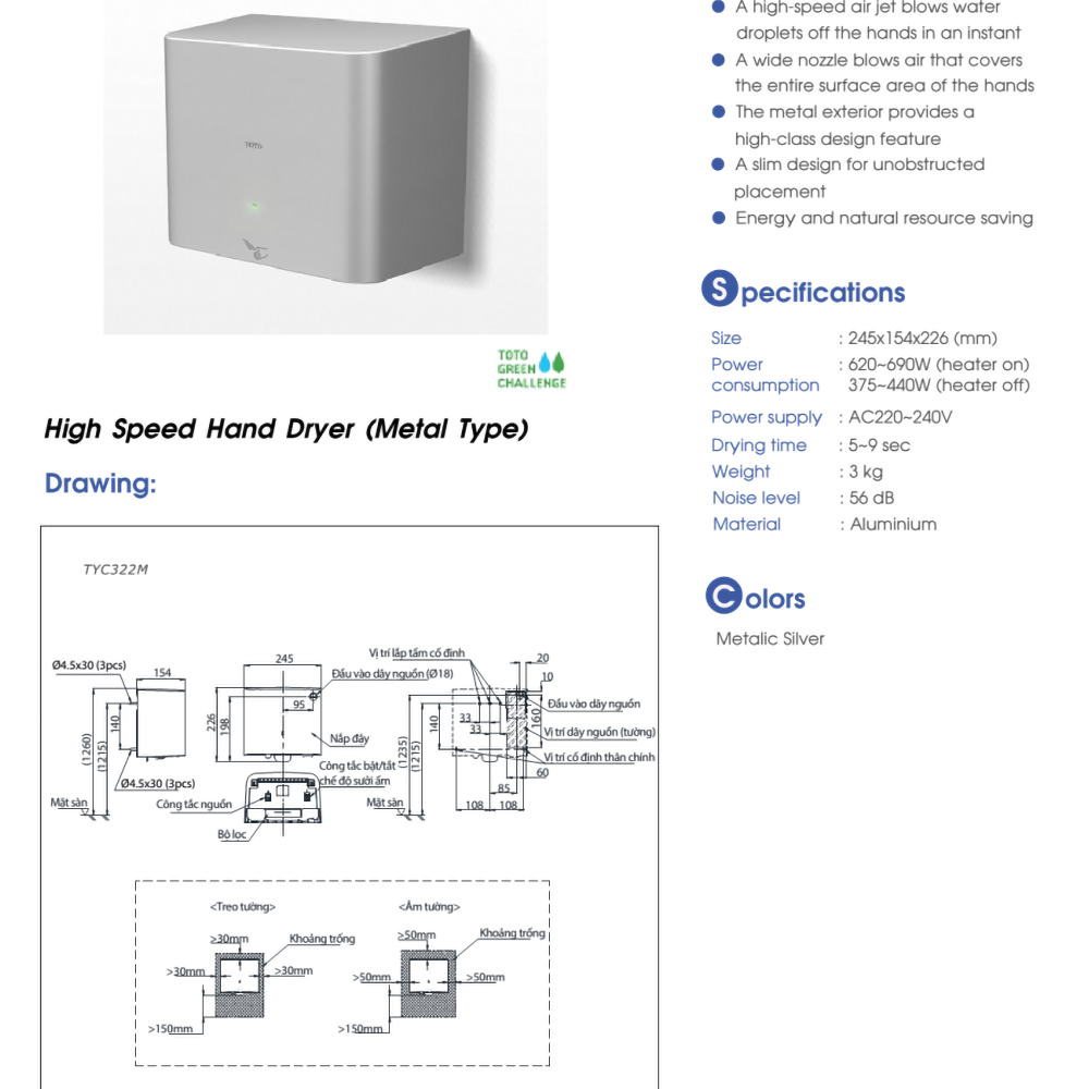 Máy sấy tay TOTO TYC322M