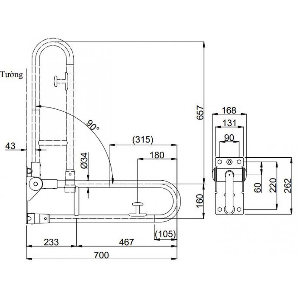 Thanh tay vịn TOTO T113HK7R/ T110D17S (loại có thể bật lên)