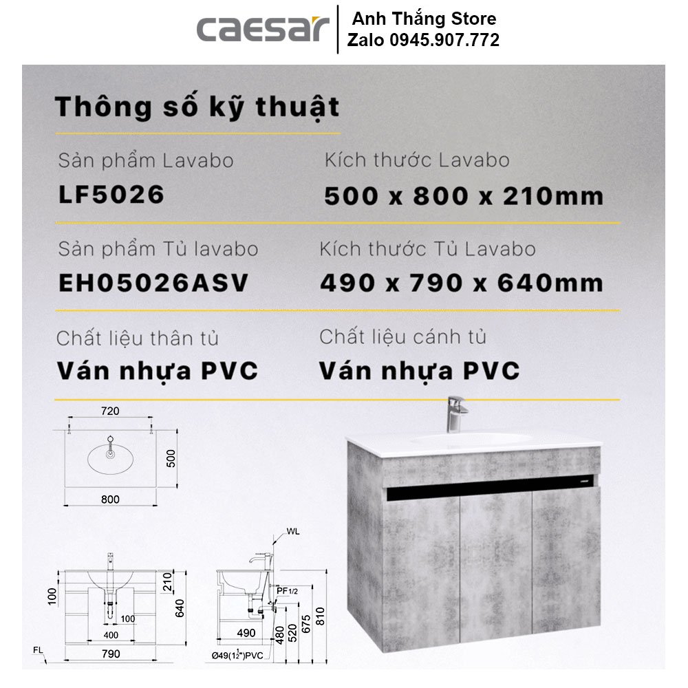 Tủ lavabo CAESAR EH05026ASV treo tường