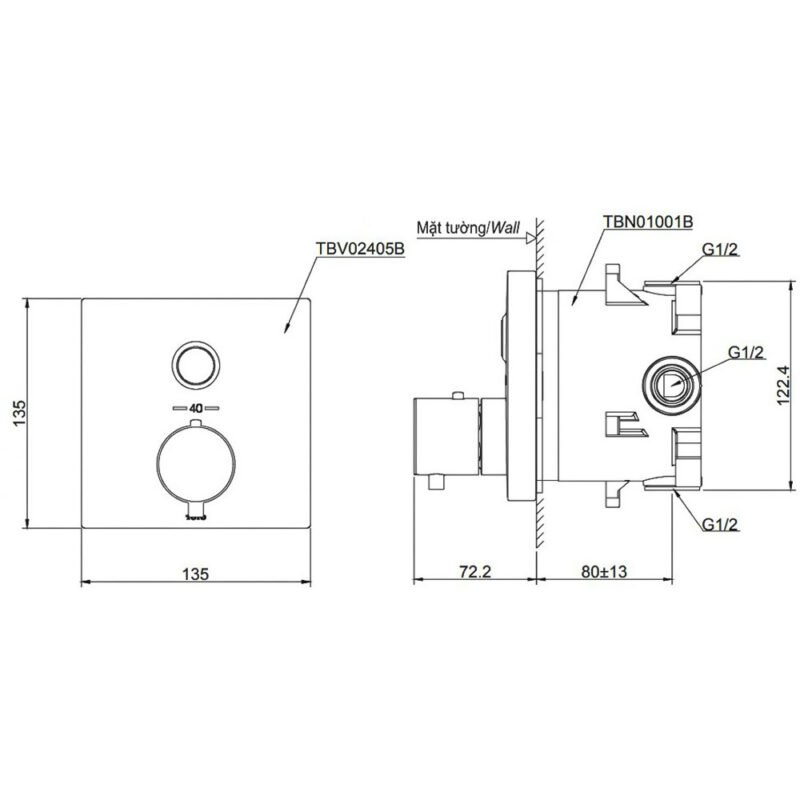 Van điều chỉnh nhiệt độ TOTO TBG01304BA/ TBN01001B (kèm phụ kiện âm tường) mạ Crom bóng
