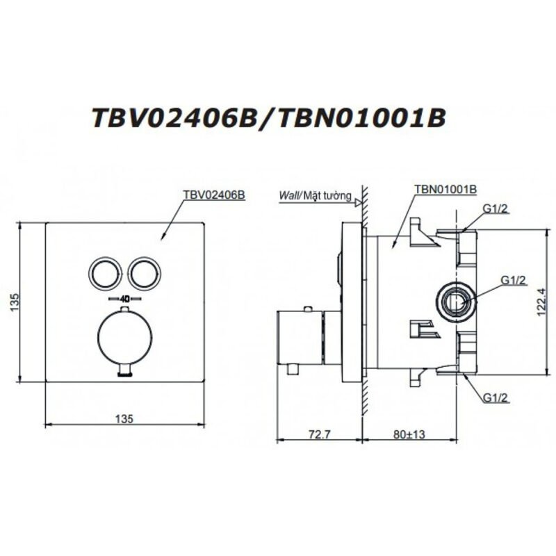 Van chuyển hướng TOTO TBV01102B/ TBN01101B (kèm phụ kiện âm tường)