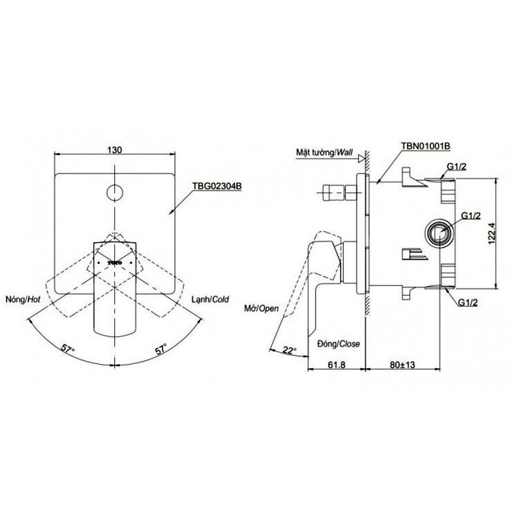 Van điều chỉnh nhiệt độ TOTO TBG02304BA/ TBN01001B (kèm phụ kiện âm tường)