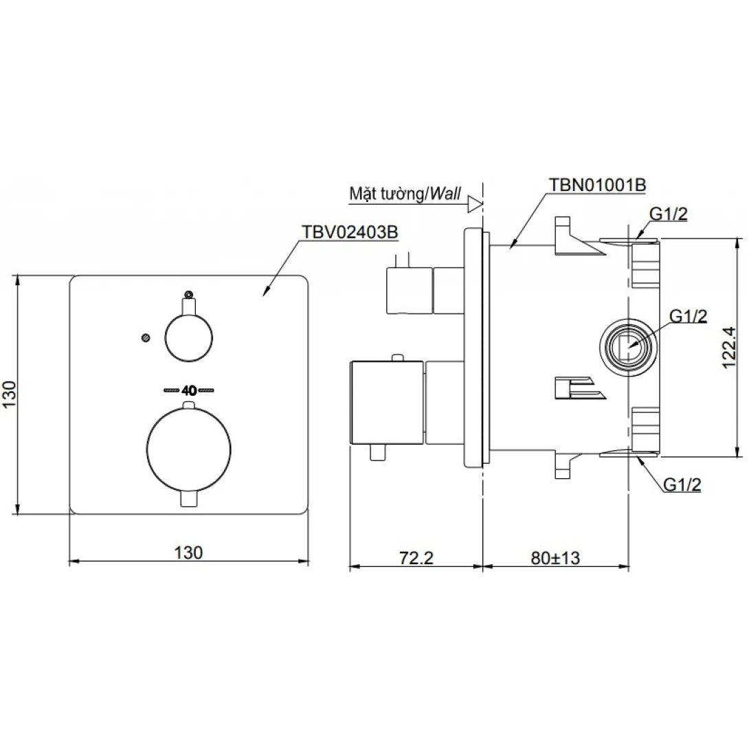 Van điều chỉnh nhiệt độ TOTO TBV02403B/ TBN01001B
