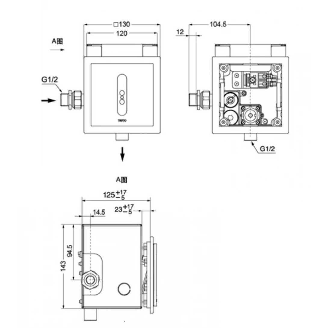 Van xả tiểu TOTO TTUE602AN cảm ứng, dùng điện 220V (Âm tường)