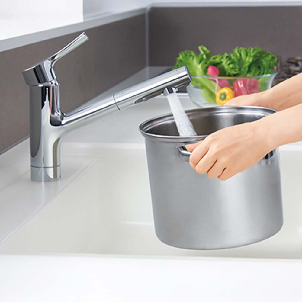 Home » Cửa hàng » Vòi rửa chén » Vòi rửa chén dây rút » Vòi rửa chén dây rút Toto » Vòi chén TOTO TKS05305JA dây rút nóng lạnh