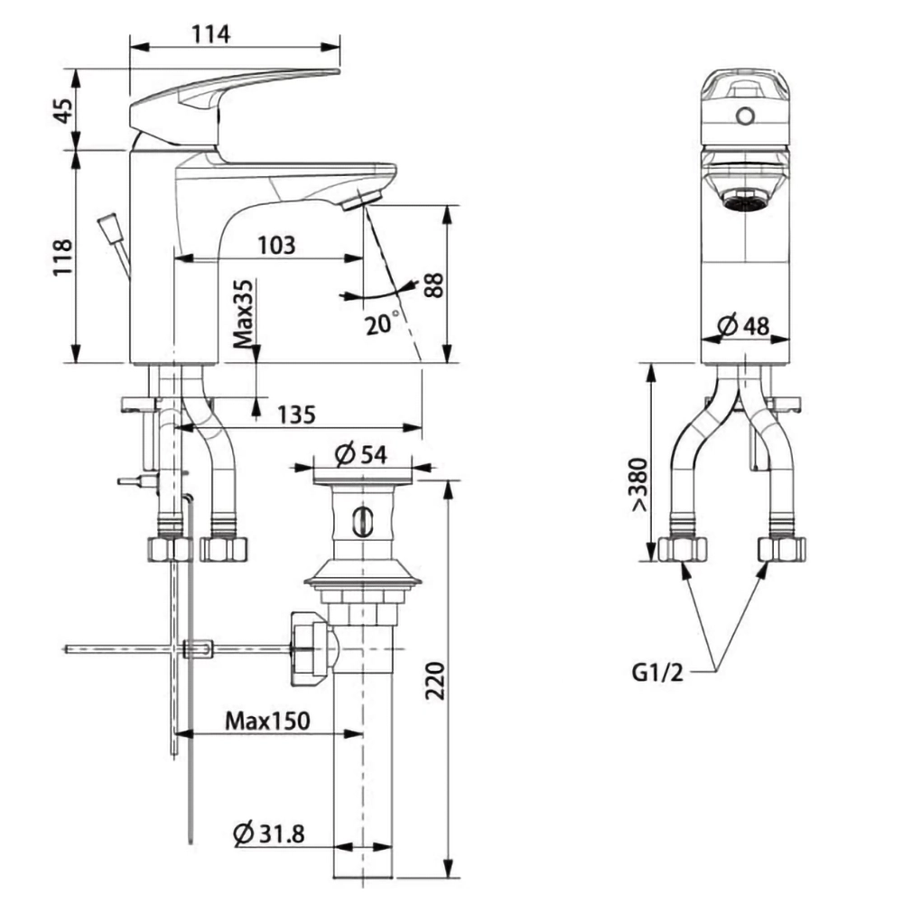 Vòi lavabo American Standard WF-0902 (WF0902) nóng lạnh, dòng Milano, cao 30.2 cm