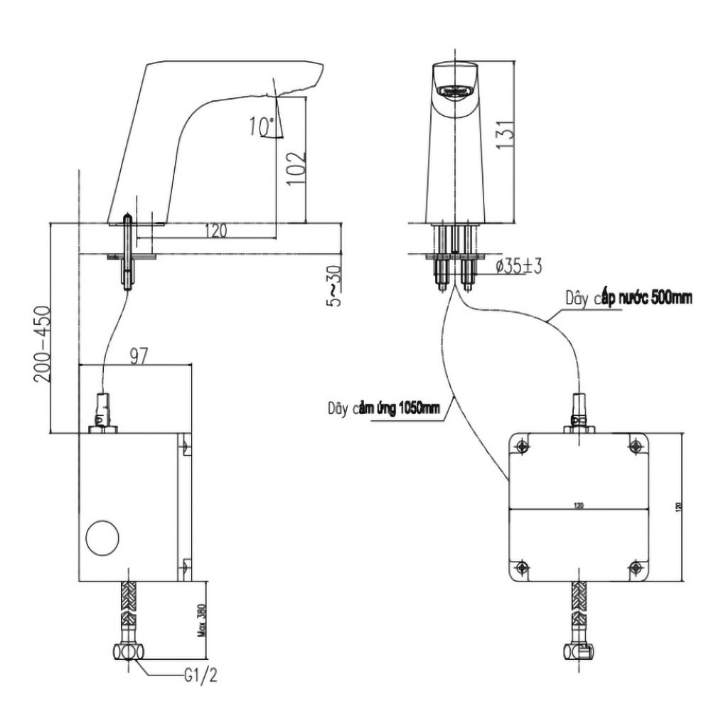 Vòi lavabo INAX AMV-91K (AMV91K) nóng lạnh, cảm ứng dùng điện 220V
