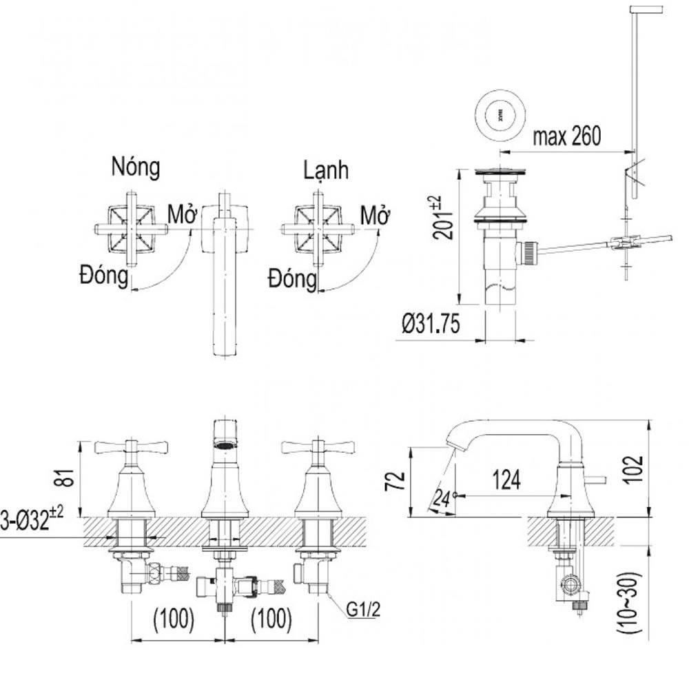 Vòi lavabo INAX LFV-8100B (LFV8100B) nóng lạnh (vòi chậu 3 lỗ)