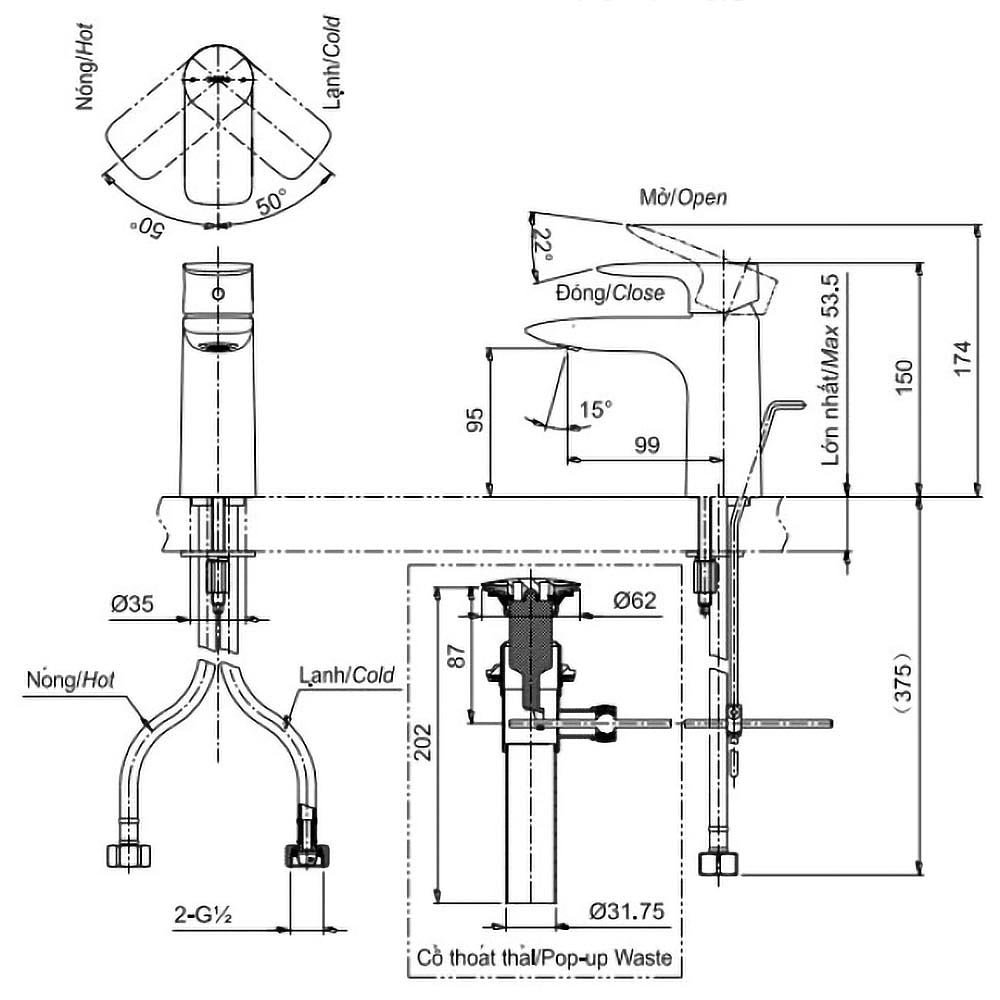 (Bao gồm bộ xả, không gồm ống thải chữ P)