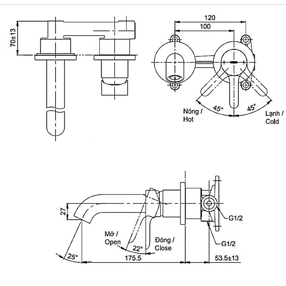 ♦ Kích cỡ: 175.5mm (Từ tâm xả nước đến tường)