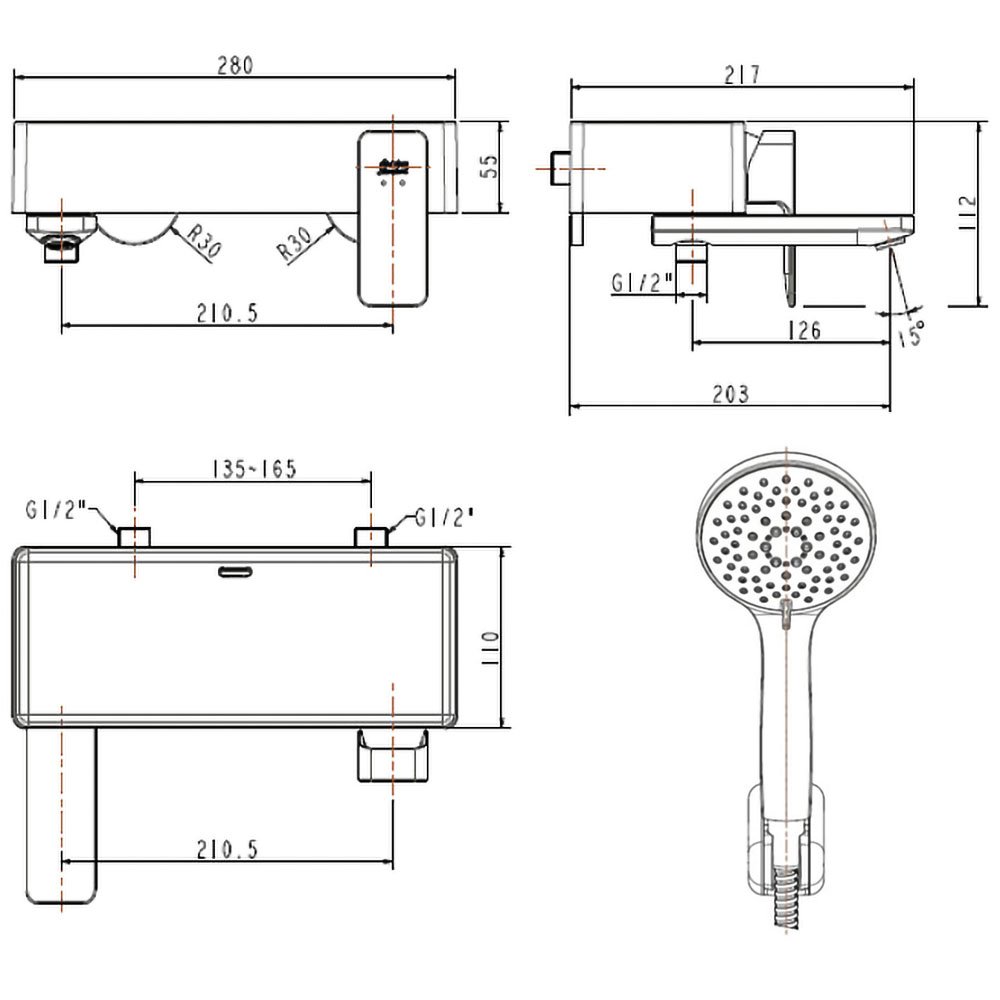 Vòi sen tắm American Standard WF-1312 (WF1312) nóng lạnh, tay sen 5 chế độ, dòng Acacia E (loại không vòi xả bồn)