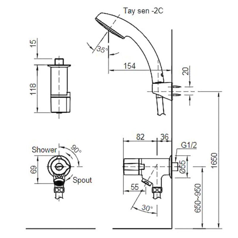 Vòi sen tắm INAX BFV-10-2C (BFV102C) lạnh, tay sen mạ