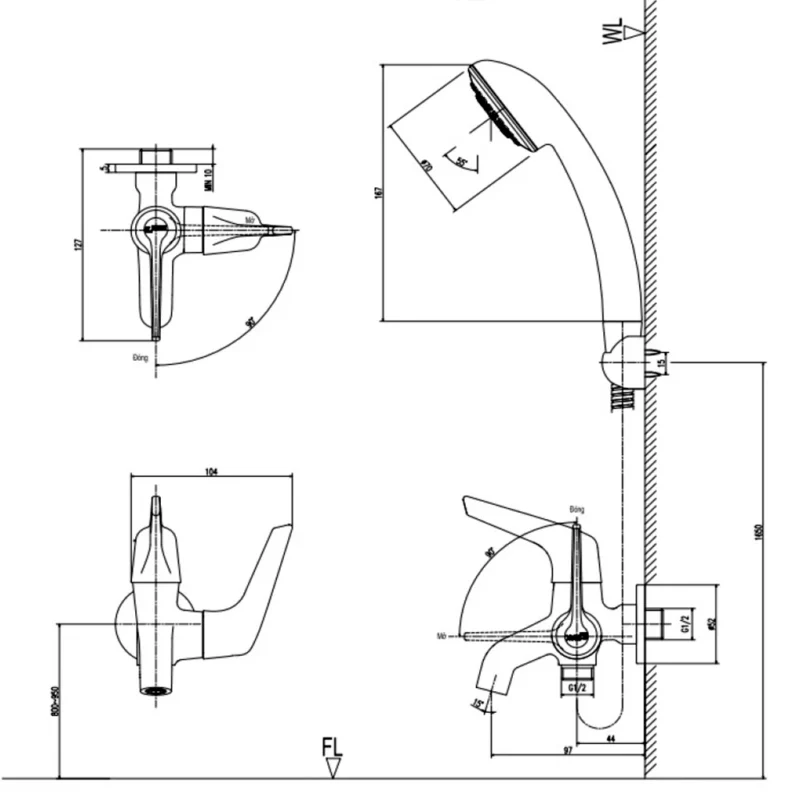 Vòi sen tắm INAX BFV-1113S-4C (BFV1113S4C) nóng lạnh, tay sen 4C